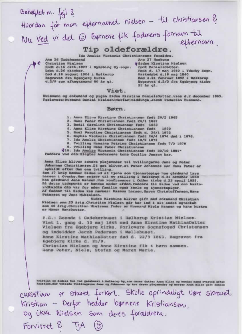 Familien Kristiansen, som vi definerer den her, består af direkte efterkommere af.: